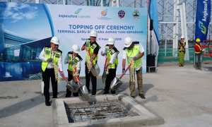 Proses pembangunan terminal baru Bandara Internasional Ahmad Yani telah memasuki tahap finishing. Tahap penyelesaian proyek infrastruktur di Kota Semarang itu ditandai dengan seremonial topping off di terminal baru bandara itu, Minggu (11/2/2018).